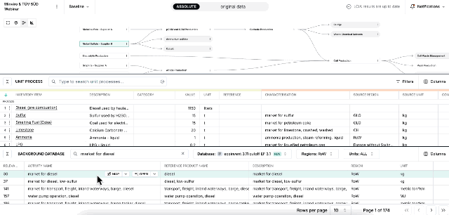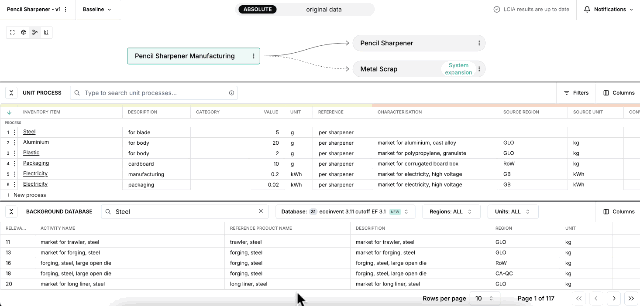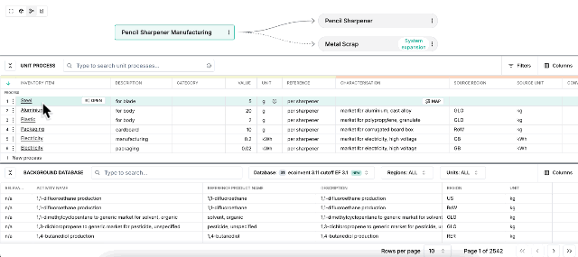 To calculate a product’s environmental impact, each inventory item in your LCA project must be linked to a background dataset. This guide walks you through how to use the Background Database panel to search, map, and characterise your data for LCIA results.